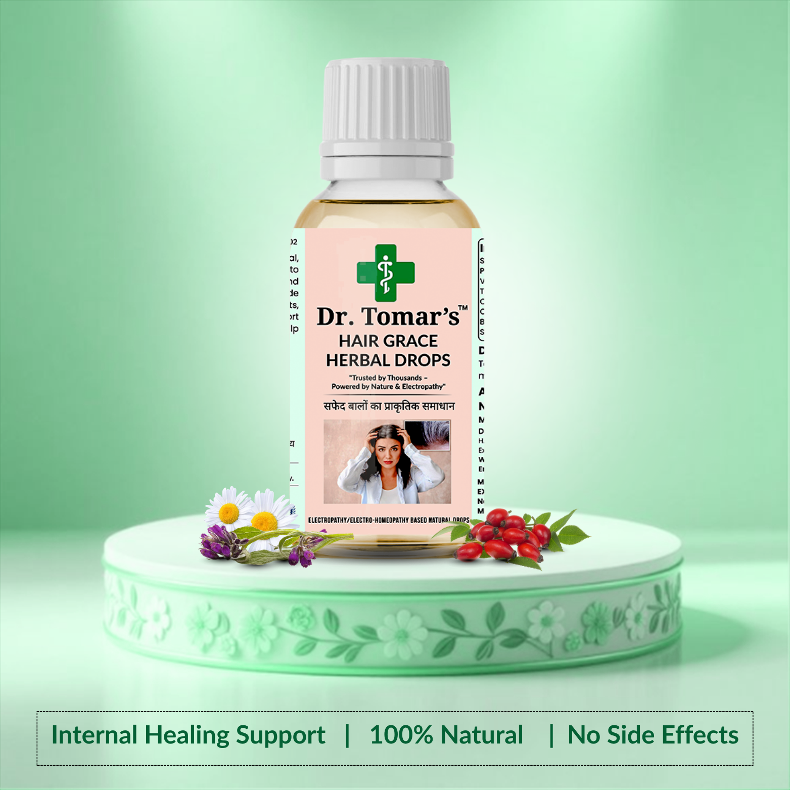 Hair Grace Herbal Drops are a natural, electro-homeopathy-based formulation specially designed to support healthy hair growth and reduce hair fall naturally. Enriched with scalp-nourishing, root-strengthening, and circulation-boosting ingredients, these drops work internally to stimulate hair follicles,