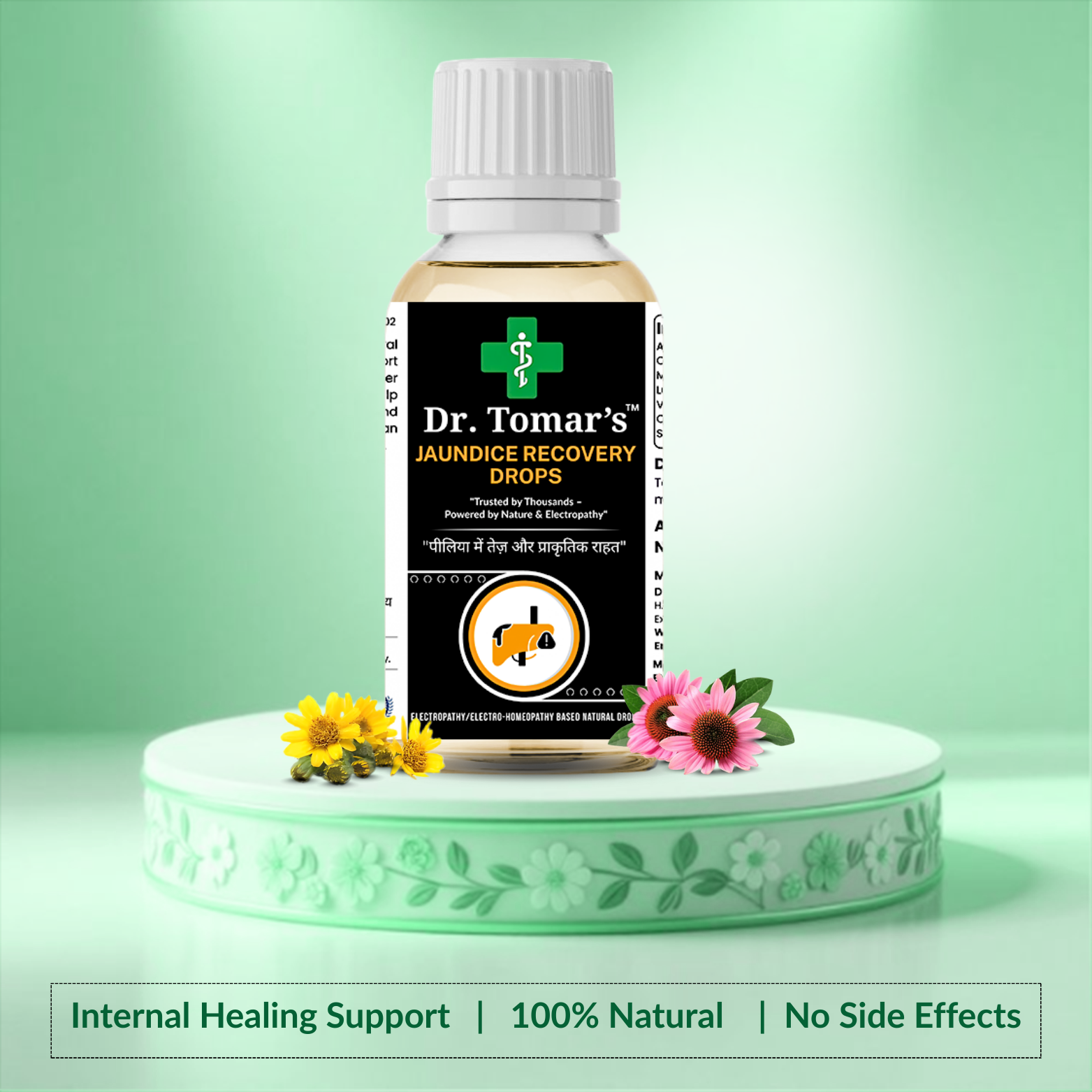 Dr. Tomar’s Jaundice Recovery Drops are a natural, electro-homeopathy-based formulation designed to support the body in reducing bilirubin levels and restoring liver health safely. Enriched with liver-cleansing and bile-regulating herbal ingredients, these drops work internally to detoxify the liver,