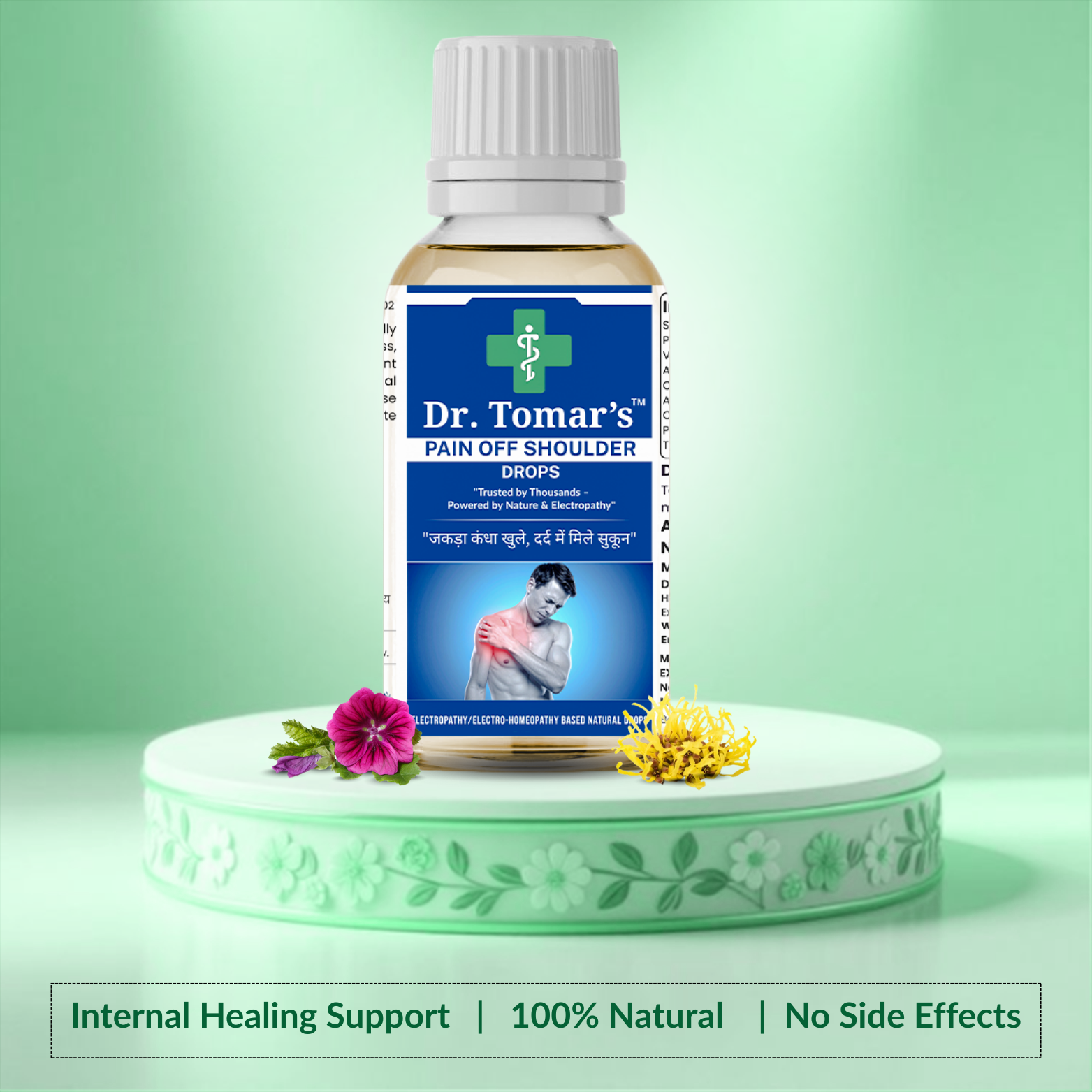 Dr. Tomar’s Pain Off Shoulder Relief Drops are a natural electro-homeopathy formulation designed to support fast shoulder pain relief. With muscle-relaxing, inflammation-calming, and nerve-soothing herbal ingredients, these drops work internally to reduce stiffness, soreness, and mobility discomfort